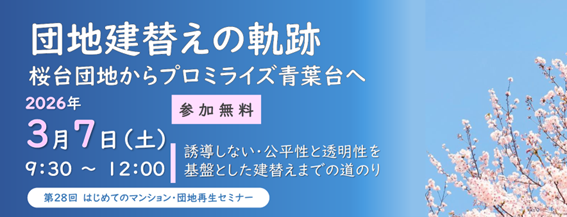 2026年3月7日 第28回団地再生セミナーを開催します!「団地建替えの軌跡 桜台団地からプロミライズ青葉台へ」